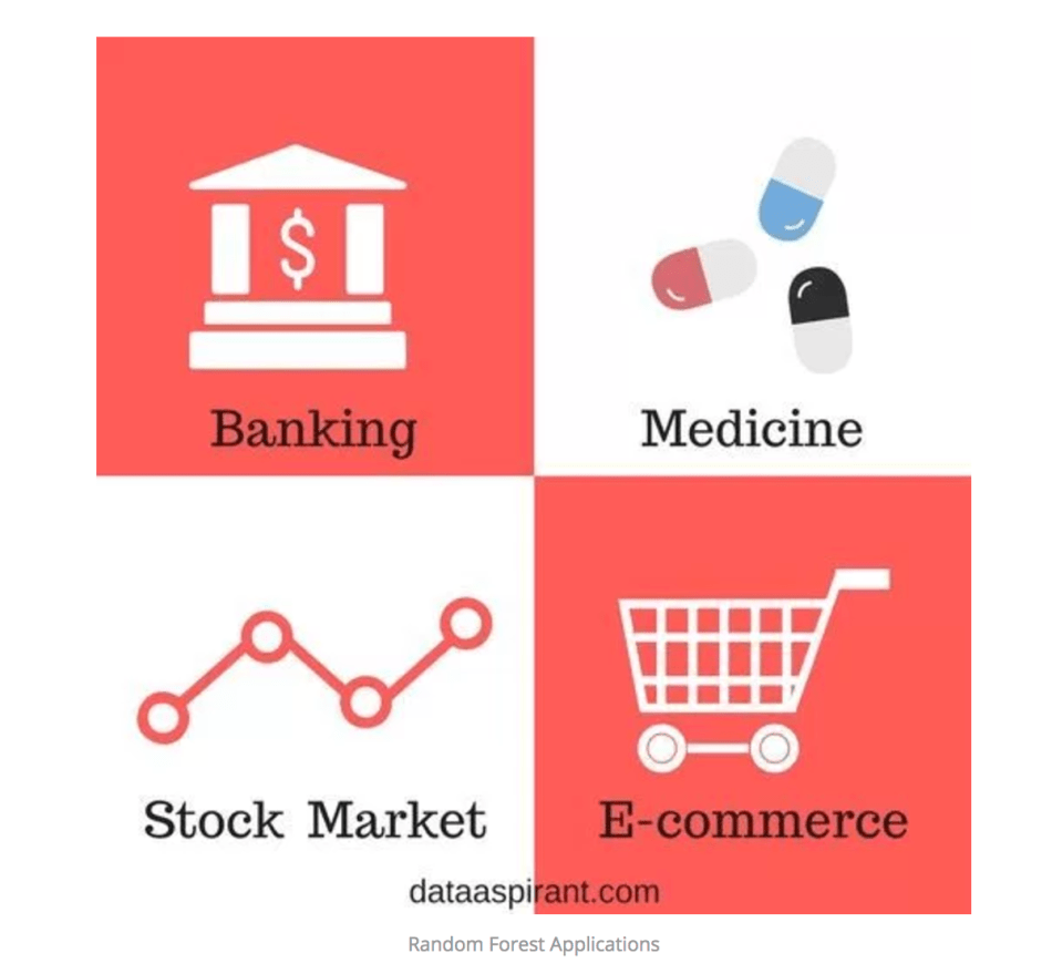 In this article, the authors give us four applications of using Random Forest algorithm: Banking, Medicine, Stock Market and E-commerce: